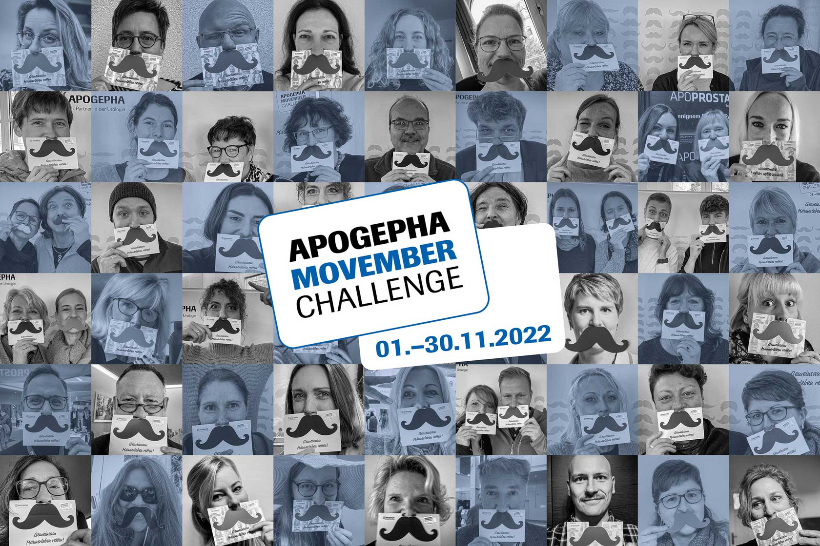 Unter dem Motto „Gemeinsam Männerleben retten“ hat auch APOGEPHA die Initiative mit der „APOGEPHA MOVEMBER Challenge“ auf vielfältige Weise unterstützt. Um Spenden zugunsten der Movember-Foundation zu sammeln, wurde eine gemeinsame Laufstrecke von über 3.800 km zurückgelegt und mehr als 520 Moustache-Selfies von UrologInnen und MitarbeiterInnen aufgenommen.